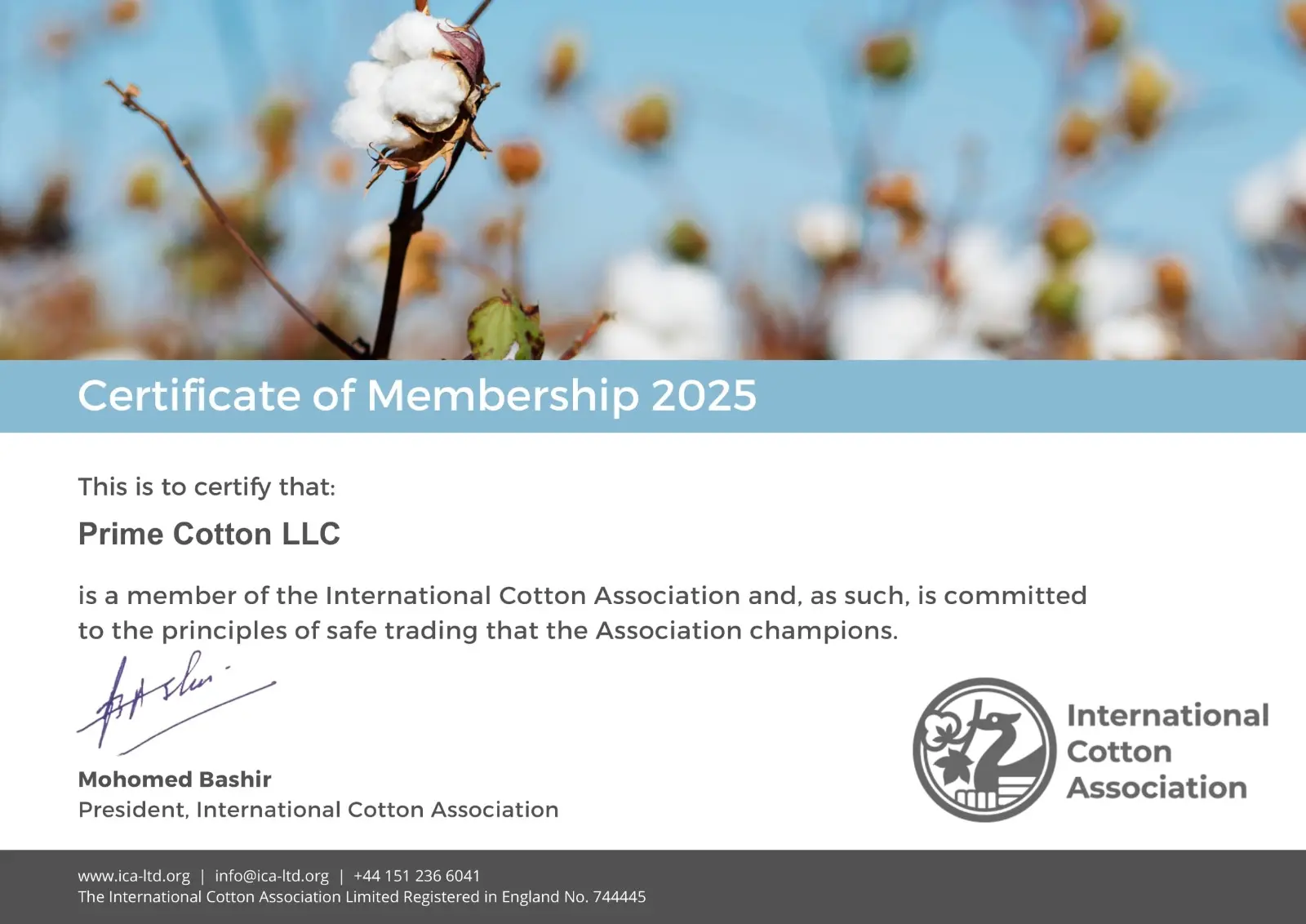 آدرس وبسایت شرکت : www.primecotton.az